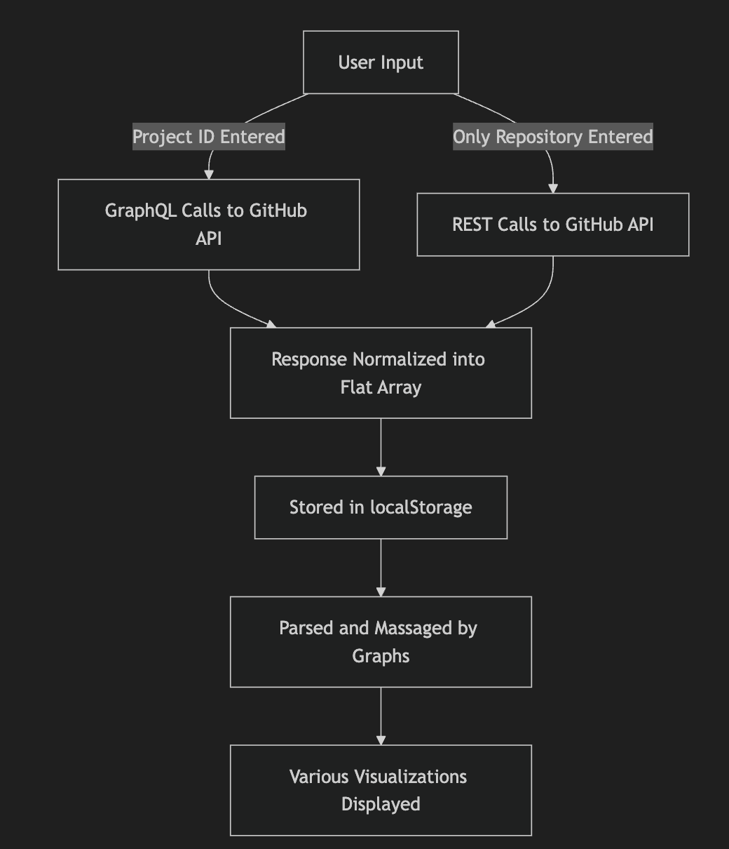 - If you enter a project ID, the app uses GraphQL to fetch data from GitHub’s API.